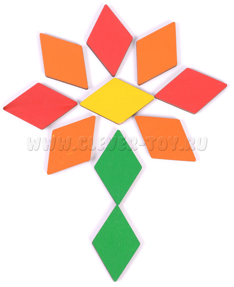 1. Выкладывать из ромбиков различные силуэты животных, транспорта и других знакомых для ребенка предметов;