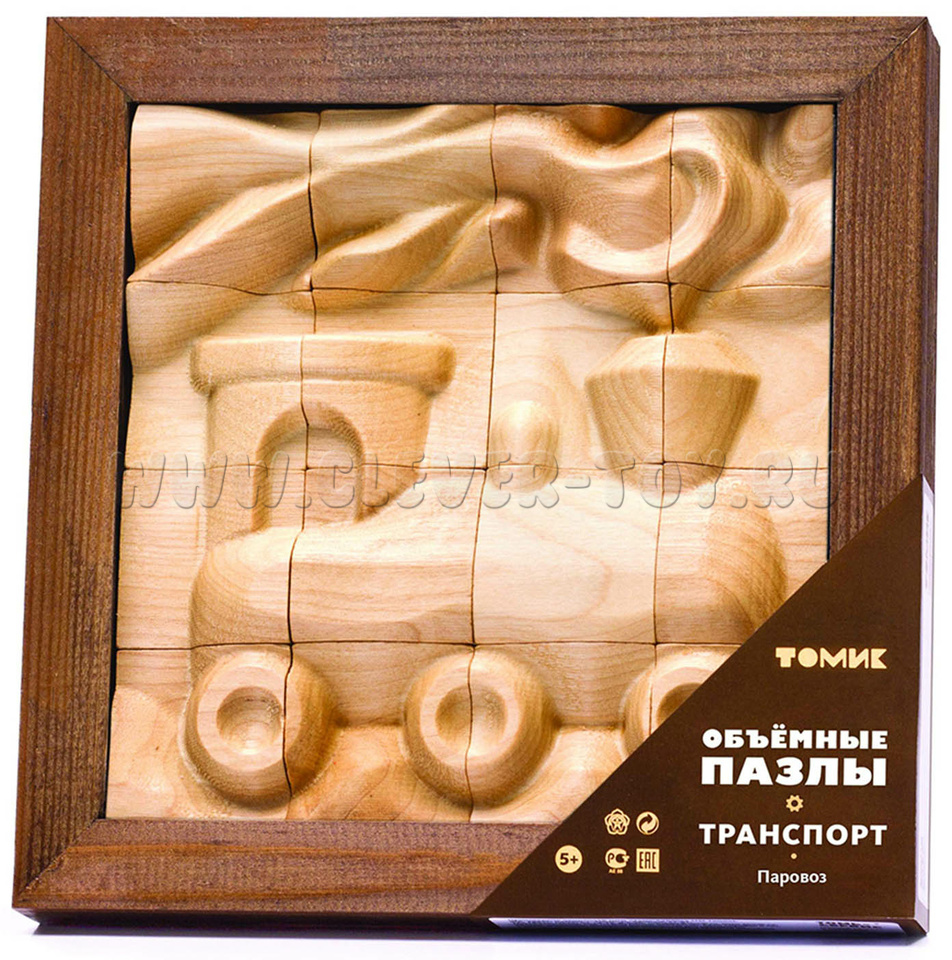 Пазл деревянный объемный "Паровоз" (16 деталей)
