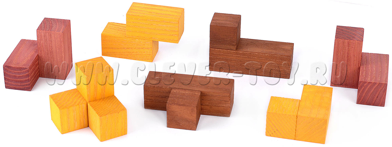 Заданий и решений задач к этой головоломке множество. Перебирая и решая задания, можно формировать различные объемные фигуры. В некоторых заданиях используются не все части головоломки.