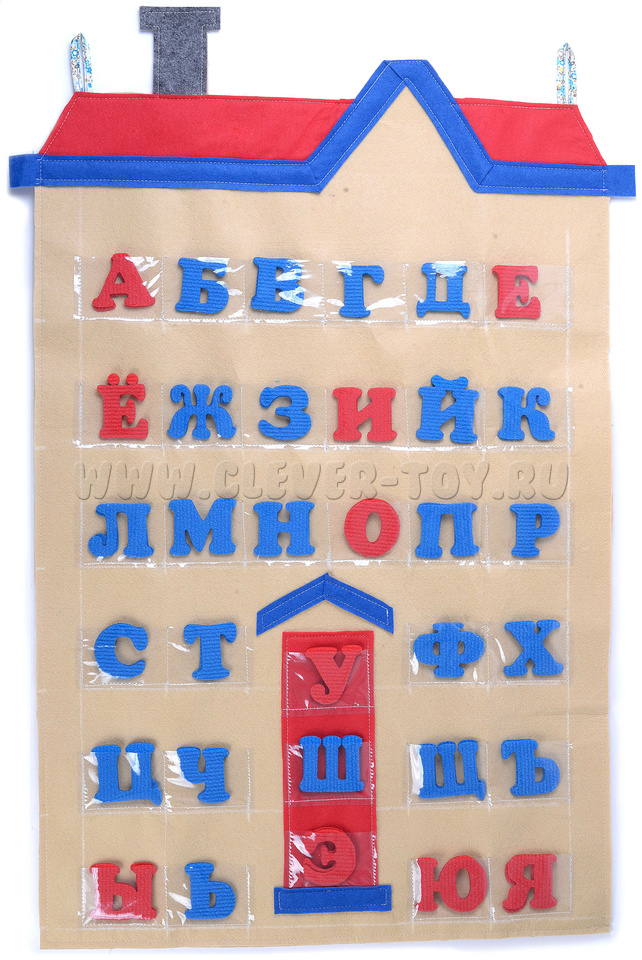 Дом с кармашками из фетра 79*53см, буквы из ковролина 66шт.