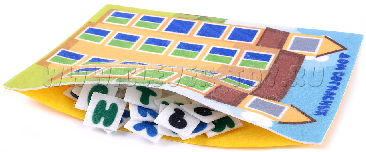 Игровое поле выполнено в виде домиков с окошками. Окошки помечены цветом (в соответствии с цветом букв). Можно вместе с ребёнком «заселять» в домики буквы, можно даже устроить соревнование между детьми – кто быстрее заполнит все окошки. Также можно «приводить буковки в гости» - гласные приходят в гости к согласным, таким образом, малыш осваивает понятие «слог» и учится читать. Еще одним вариантом задания может стать игра «Волшебная история»: рассказываем историю, добавляя в неё слова, выложенные из букв.