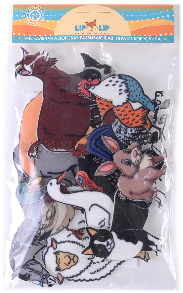 Все фигурки оснащены многоразовыми липучками, благодаря которым животные легко крепятся на игровом поле из фетра или ковролина.