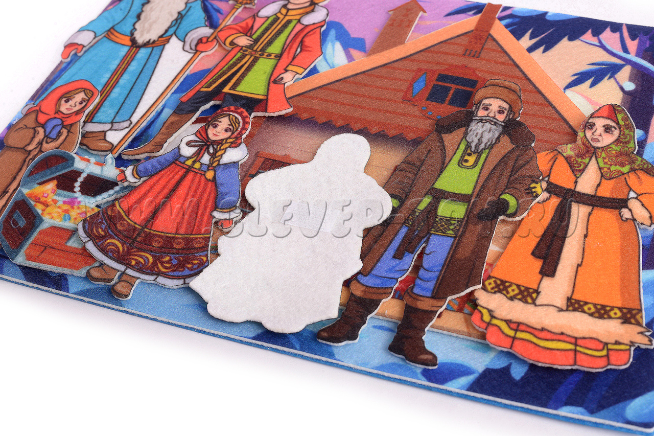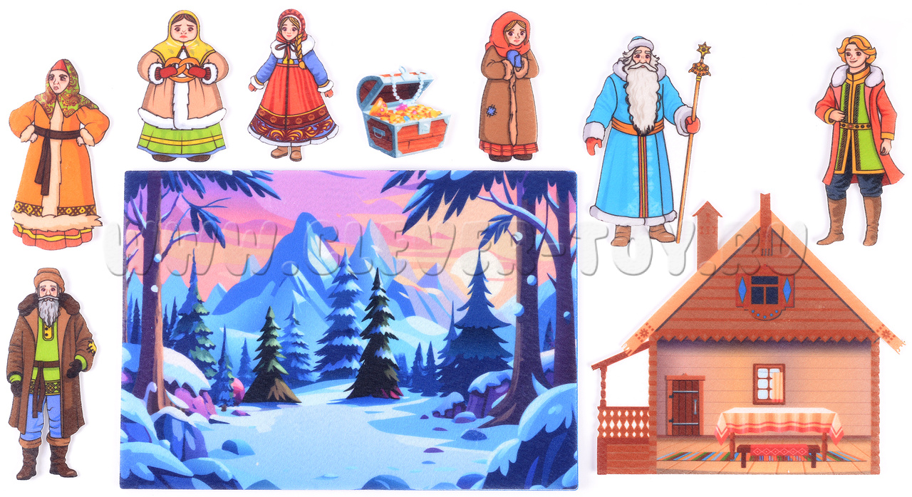 Игровой набор «Морозко» основан на русской народной сказке. Игра поможет развить у ребёнка воображение и речь, а также мелкую моторику рук.В набор входит игровое поле и 7 фигурок.
