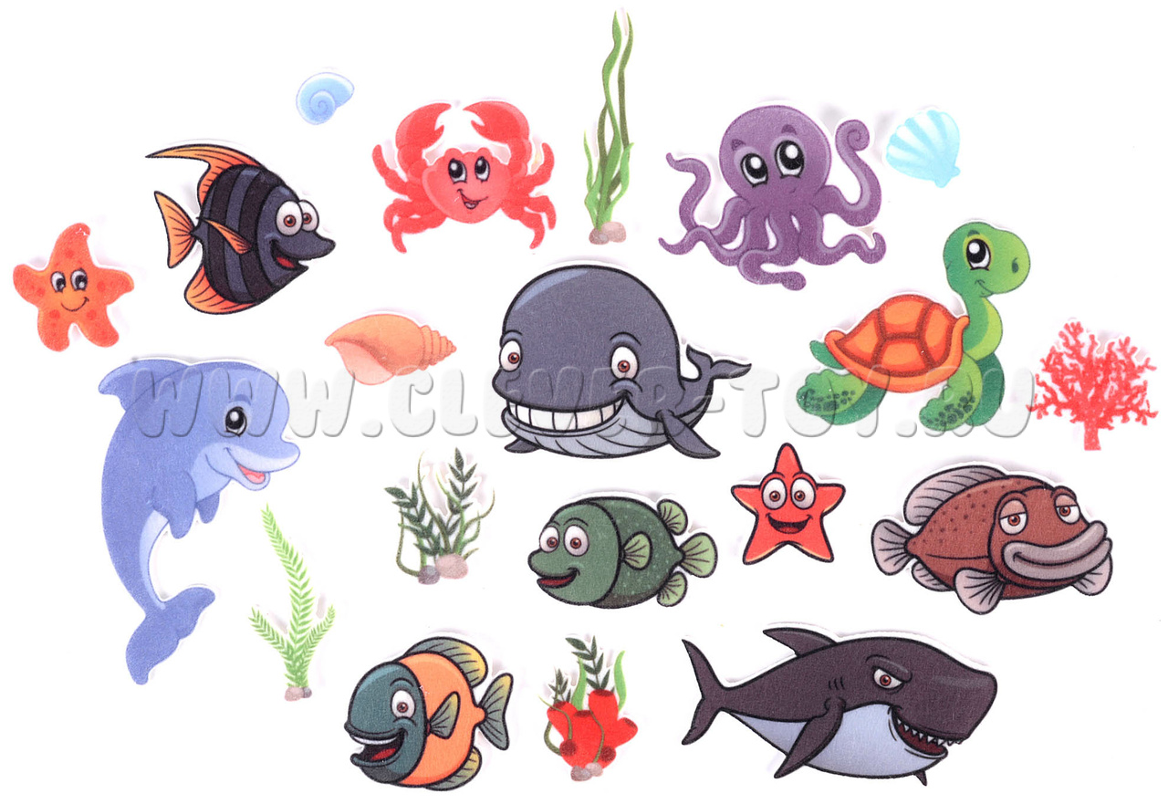• 12 фигурок обитателей морских глубин, в том числе – краб, морская черепаха, кит, акула, осьминог, рыбы и др.,