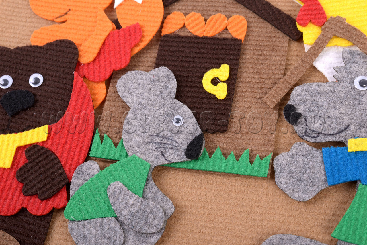Игровой ковролиновый конструктор для дошкольников по мотивам сказки «Заюшкина избушка».