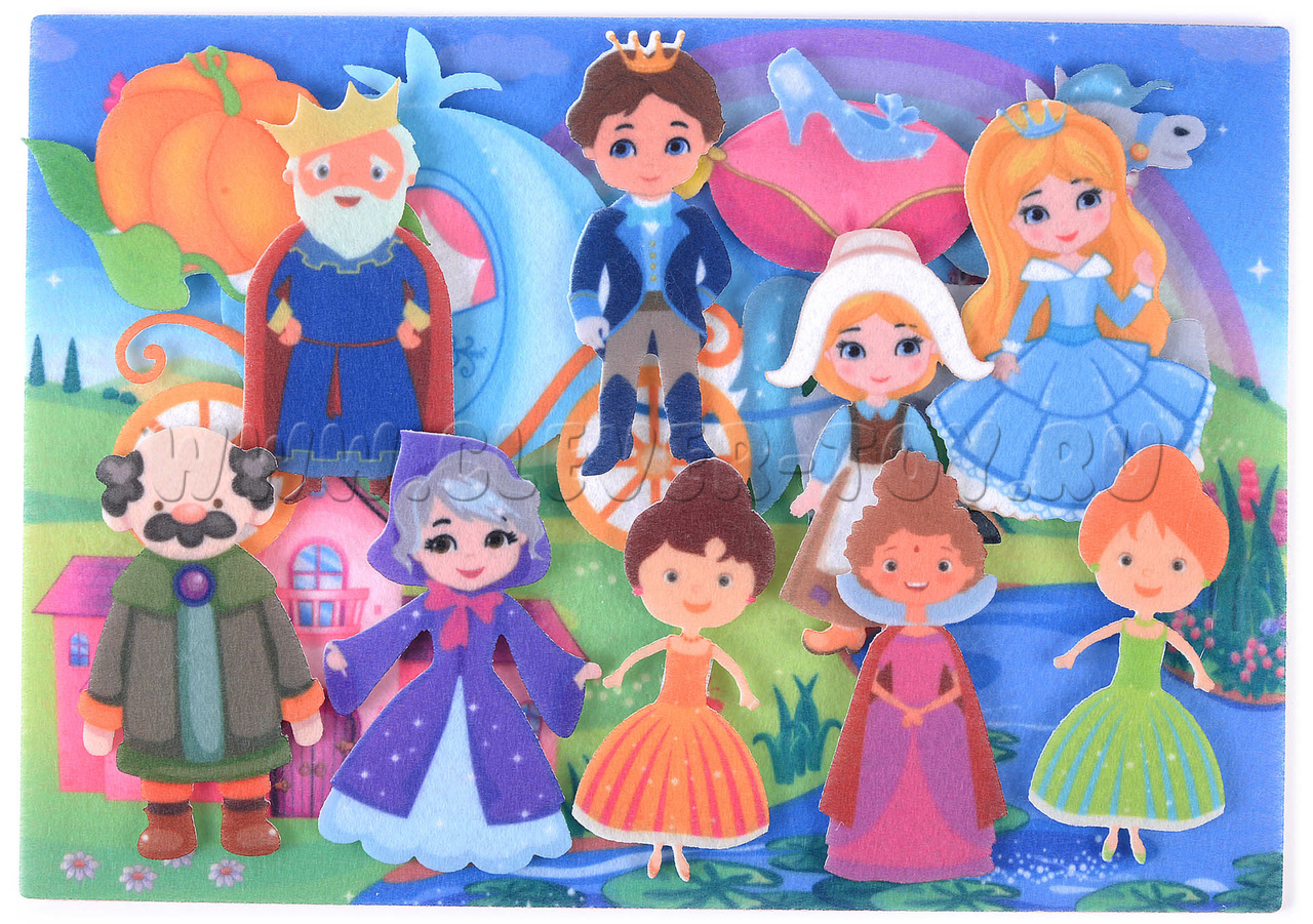 Передвигая по мягкой основе фигурки персонажей Шарля Перро, родители и дети могут разыгрывать известный сюжет по ролям, или же придумать абсолютно новую историю. В процессе игры можно обсудить с малышом сказку и ее героев: «Чего еще могла пожелать Золушка?», «Какие приключения ждут ее и принца?» и др.