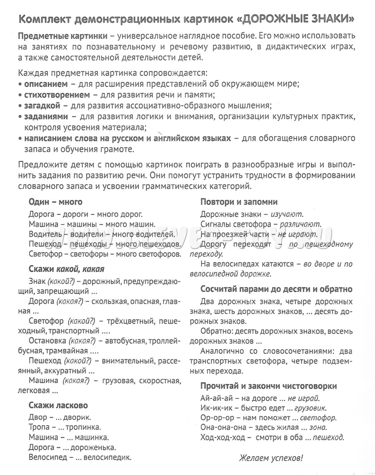 На обороте каждой предметной картинки - описание, стихотворение, загадка, вопросы для ребёнка.