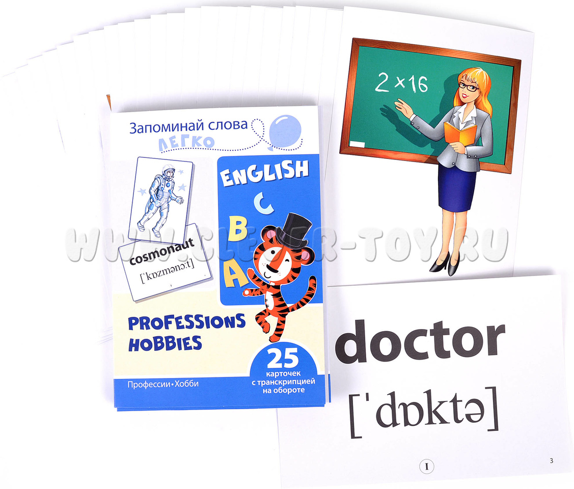 Запоминай слова легко. Профессии, хобби. 25 карточек с транскрипцией на обороте. Английский язык