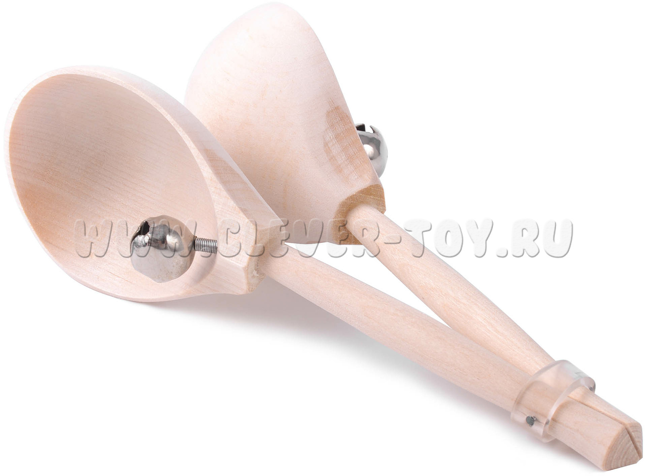 Ложки в станке с бубенцами (дерево, без росписи)