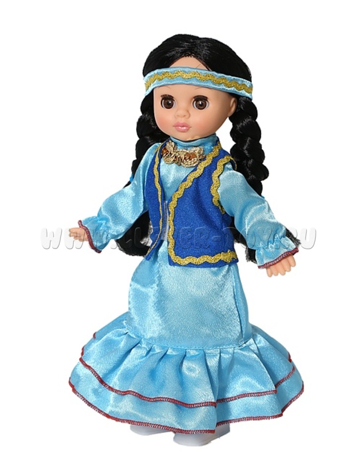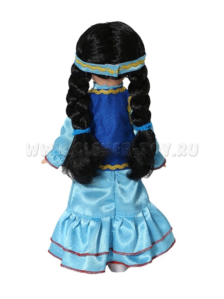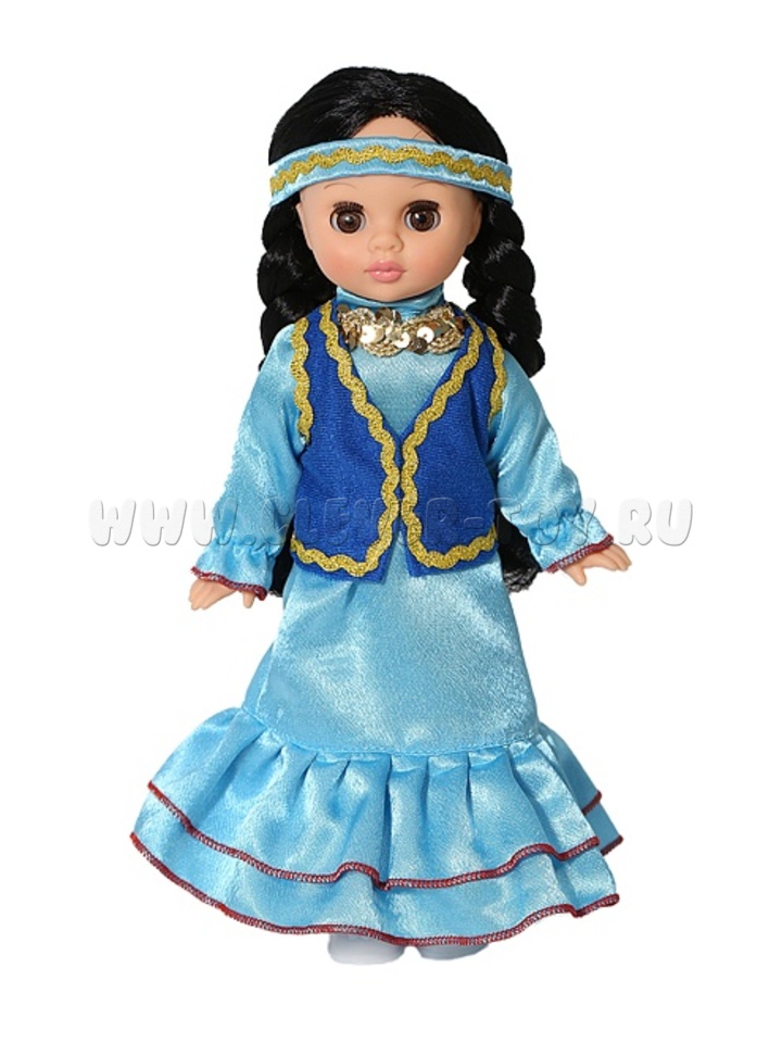 • В комплект национальной одежды куклы входит: длинное платье с расклешением книзу, жилет, ободочек, трусики и туфельки. Наличие легкоснимаемых и одеваемых элементов одежды разнообразит сюжетно-игровой процесс с этой куклой, в результате которого развивается мелкая моторика и творческое воображение ребёнка.
