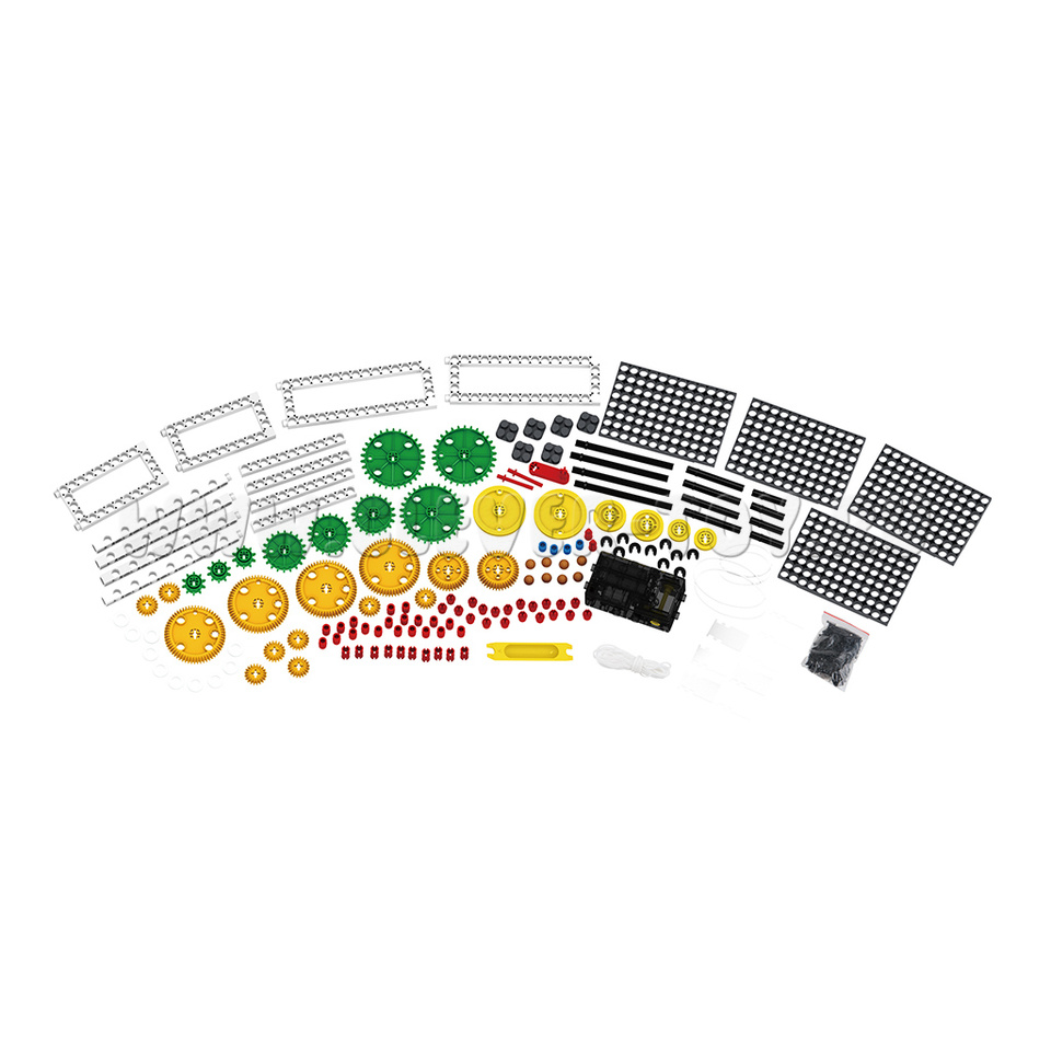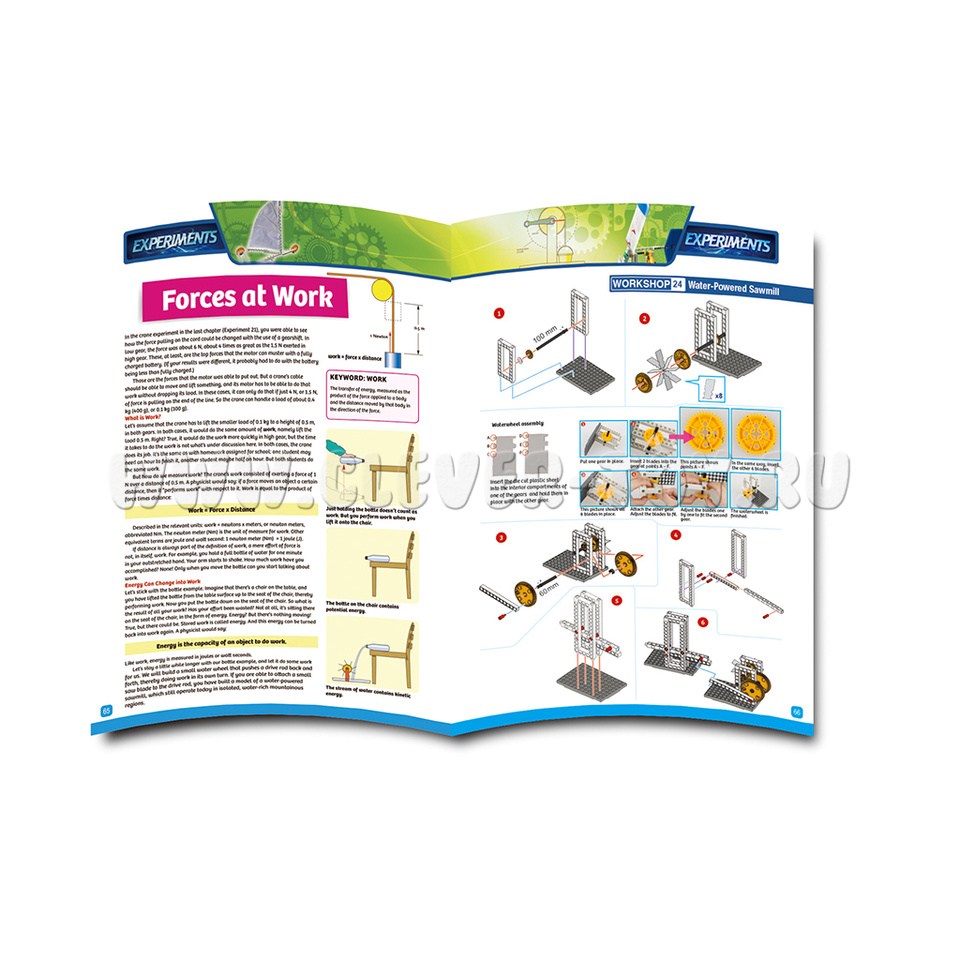 Это полноценная лаборатория по физике и механике, собранная в одном наборе. Содержит 306 деталей, из которых можно собрать 37 экспериментальных моделей: генератор, маятниковые часы, кран, парусную машину, марсианского робота и многое другое. В комплект входит подробное методическое пособие на 104 страницы.
