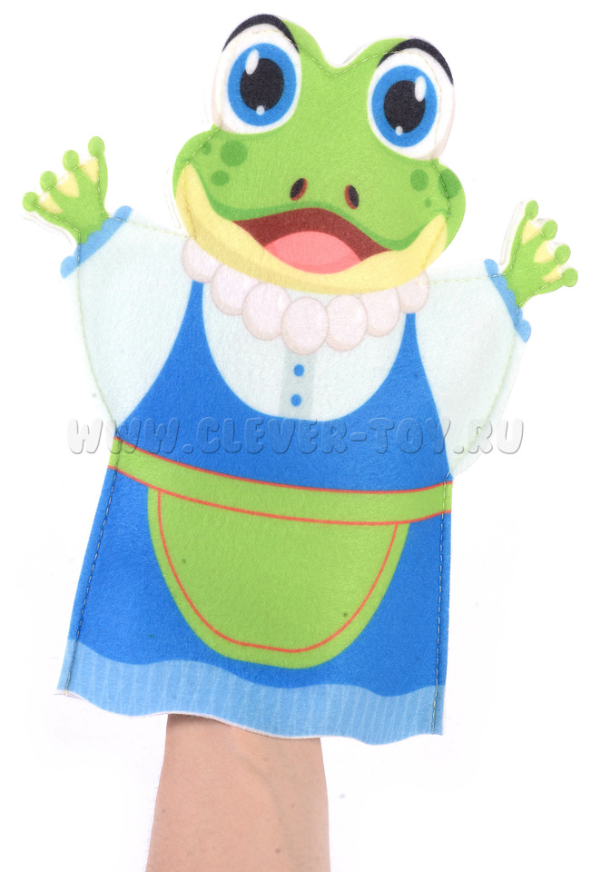 Шесть персонажей из сказки теремок на руку. Лягушка, волк, лиса, медведь, заяц, мышка. Фигурки 23 см.