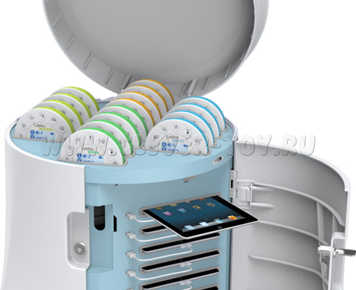 Мобильная тележка для хранения и подзарядки 16 ЛабДисков, в которую поместится любой набор цифровых лабораторий вместе с планшетами.
